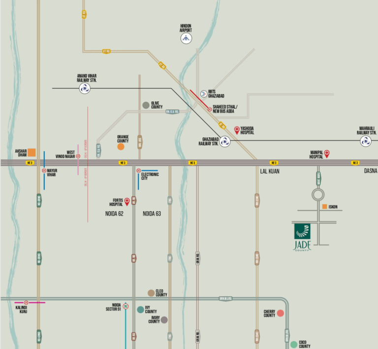 Discover Jade County, a high-rise residential masterpiece spanning 13 acres with nine towers offering over 1,014 premium 3BHK, 4BHK, and 5BHK residences. Located at a bustling thoroughfare across the DelhiMeerut Expressway, it boasts excellent connectivity to Delhi and NCR.